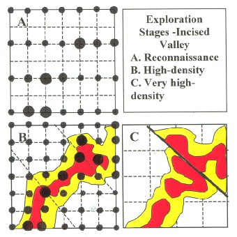 In general, the basic approach to any exploration program is to use methods that provide the maximum information at the lowest cost possible. Accordingly, a reconnaissance survey on one-mile centers should be conducted first to assess the oil and gas potential of an area. Once the anomalous trends for Methane (for gas) and Ethane+ (for oil) are established, higher density surveys should be conducted to further define the aerial extent and configuration of the anomalies. High-density surveys (400-meter spacing or less) coupled with seismic confirmation of structure provides a firm basis for a drilling decision.
